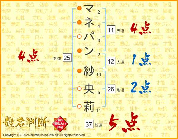 マネパン紗央莉さんの天運は11画の4点!