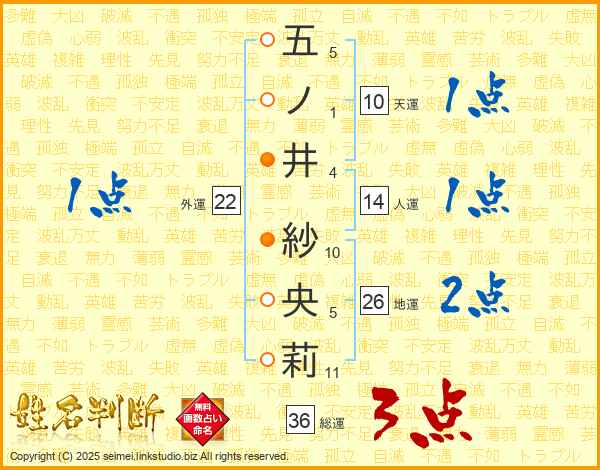 五ノ井紗央莉さんの総運は36画の3点!