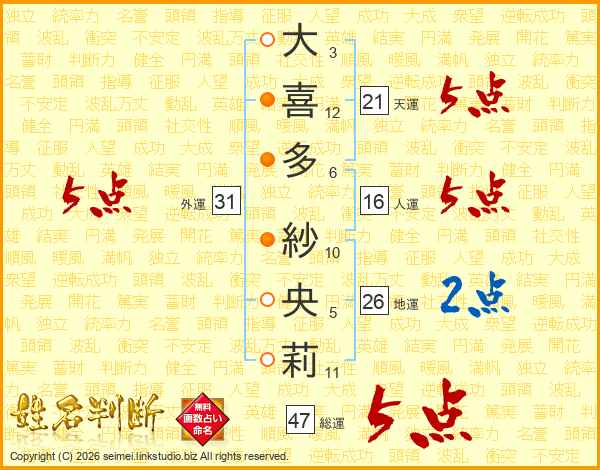 大喜多紗央莉さんの外運は31画の5点!