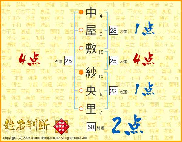 中屋敷紗央里さんの人運は25画の4点!