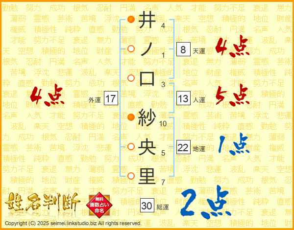 井ノ口紗央里さんの外運は17画の4点!