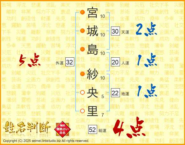 宮城島紗央里さんの総運は52画の4点!