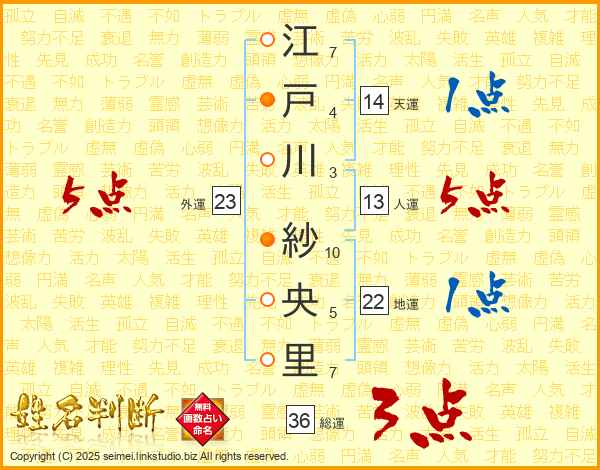 江戸川紗央里さんの外運は23画の5点!