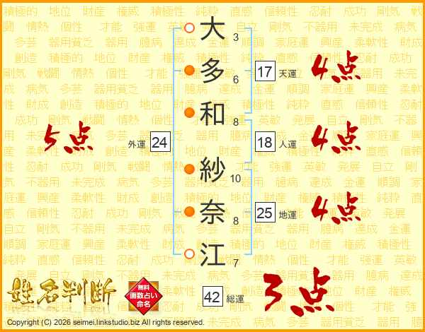 大多和紗奈江さんの人運は18画の4点!