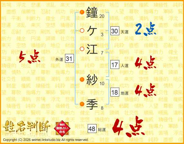 鐘ケ江紗季さんの総運は48画の4点!