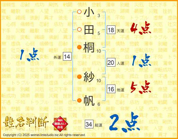 小田桐紗帆さんの総運は34画の2点!