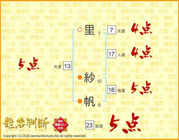 里紗帆さんの総運は23画の5点!