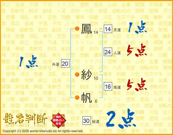 鳳紗帆さんの総運は30画の2点!