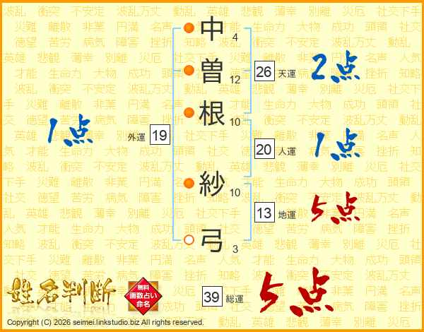 中曽根紗弓さんの総運は39画の5点!
