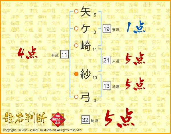 矢ケ崎紗弓さんの総運は32画の5点!