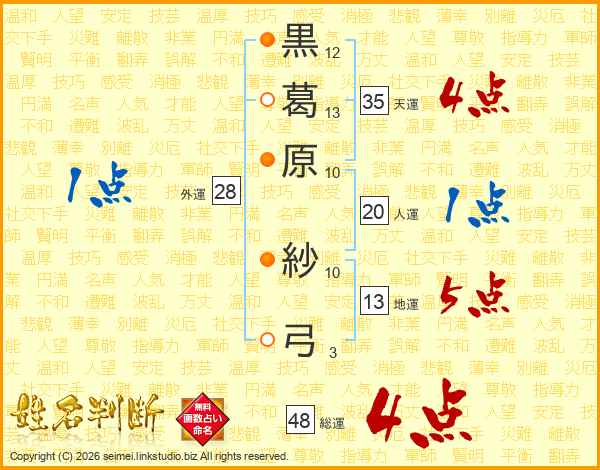 黒葛原紗弓さんの天運は35画の4点!