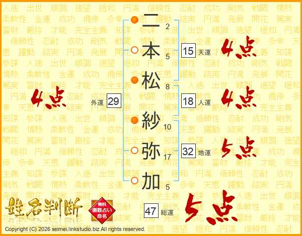 二本松紗弥加さんの総運は47画の5点!