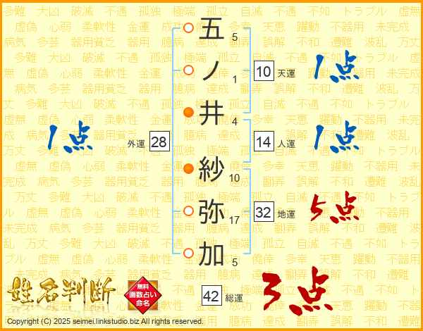 五ノ井紗弥加さんの総運は42画の3点!