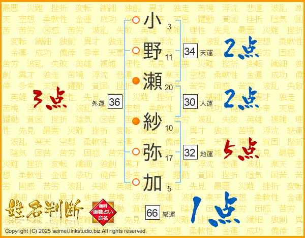 小野瀬紗弥加さんの総運は66画の1点!