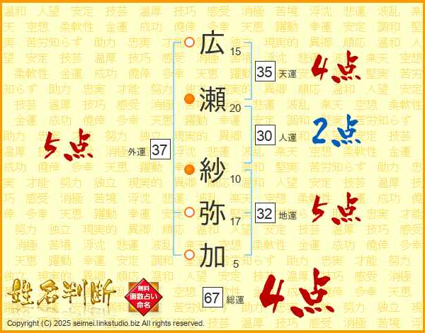 広瀬紗弥加さんの総運は67画の4点!