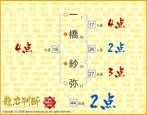 一(1画)橋(16画) 紗(10画)弥(17画)