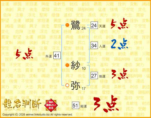 鷺紗弥さんの外運は41画の5点!