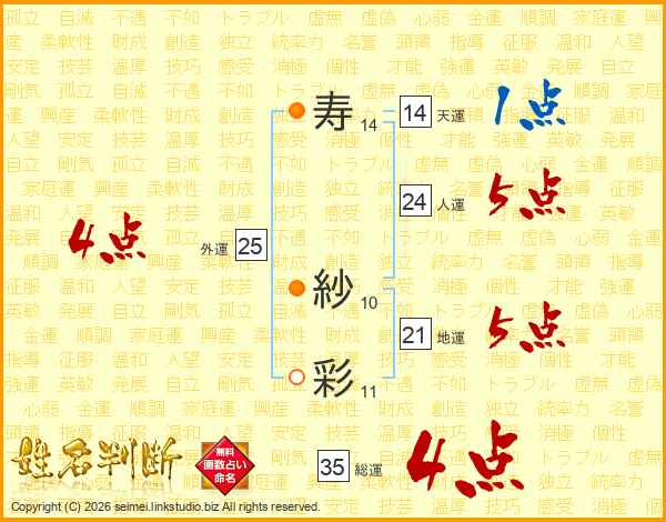 寿(14画) 紗(10画)彩(11画)