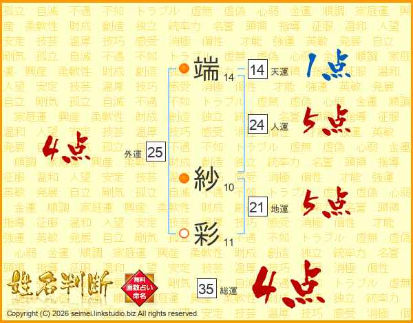端紗彩さんの総運は35画の4点!
