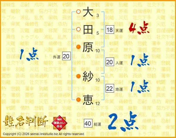 大田原紗恵さんの総運は40画の2点!