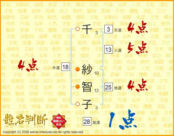 千紗智子さんの外運は18画の4点!