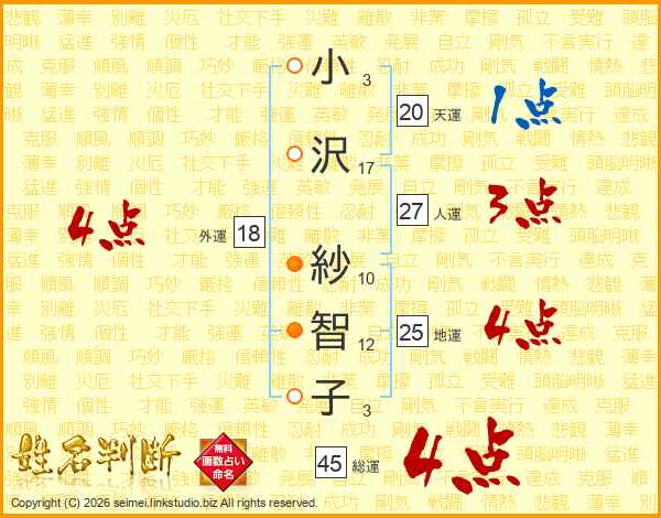 小沢紗智子さんの総運は45画の4点!