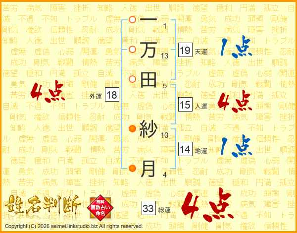 一万田紗月さんの総運は33画の4点!