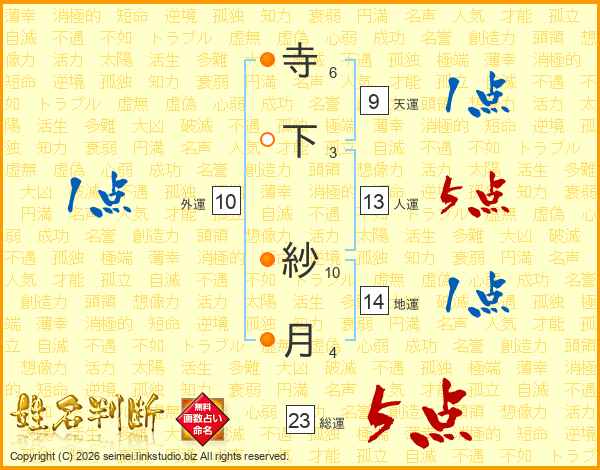 寺下紗月さんの総運は23画の5点!