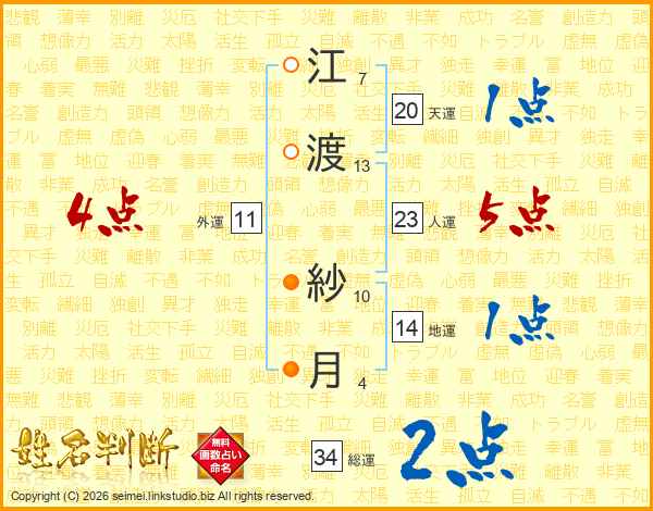 江渡紗月さんの総運は34画の2点!
