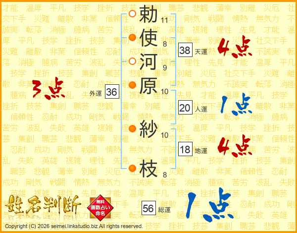 勅使河原紗枝さんの天運は38画の4点!