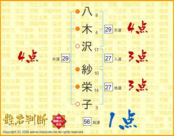 八木沢紗栄子さんの外運は29画の4点!