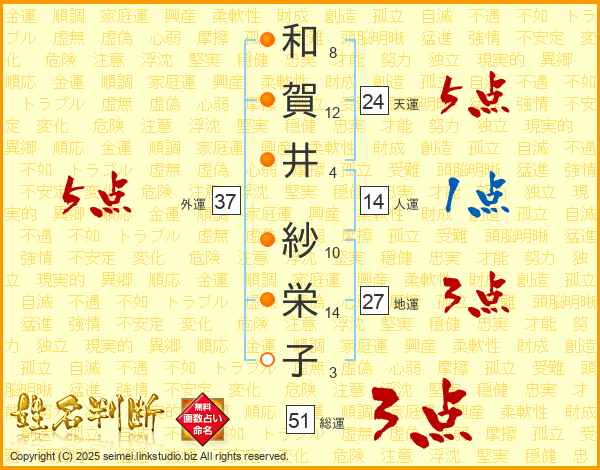 和賀井紗栄子さんの総運は51画の3点!