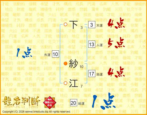 下紗江さんの人運は13画の5点!