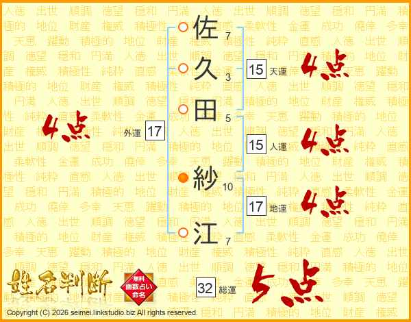 佐久田紗江さんの外運は17画の4点!