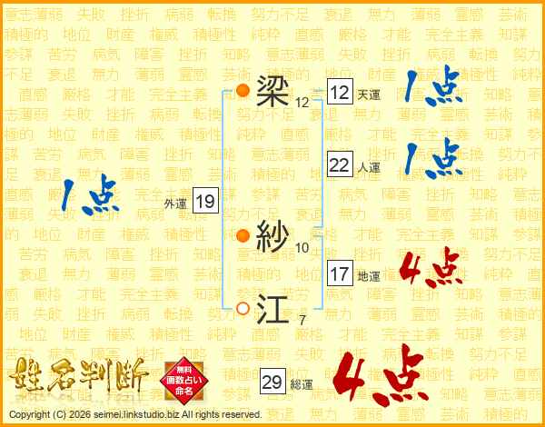 梁紗江さんの総運は29画の4点!