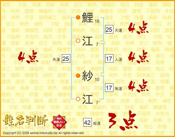 鯉江紗江さんの天運は25画の4点!