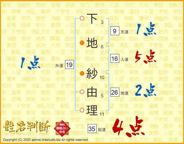下地紗由理さんの総運は35画の4点!