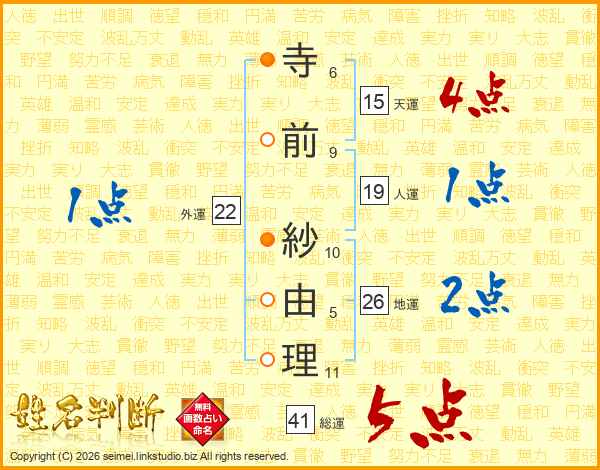 寺前紗由理さんの総運は41画の5点!
