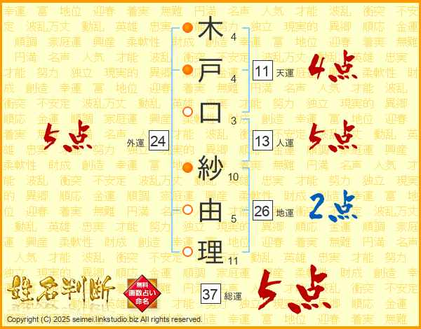 木戸口紗由理さんの総運は37画の5点!