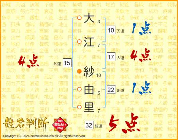 大江紗由里さんの総運は32画の5点!