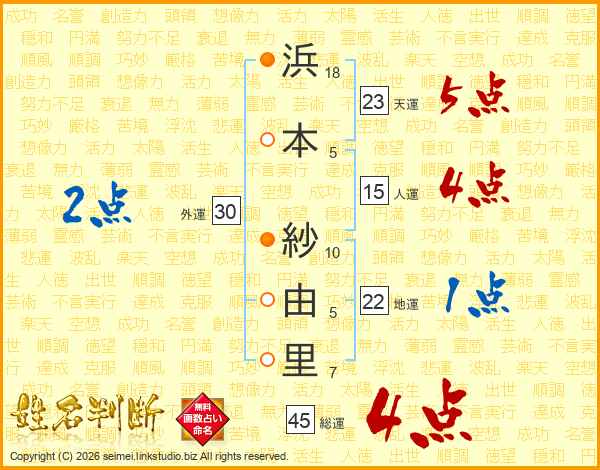 浜本紗由里さんの総運は45画の4点!