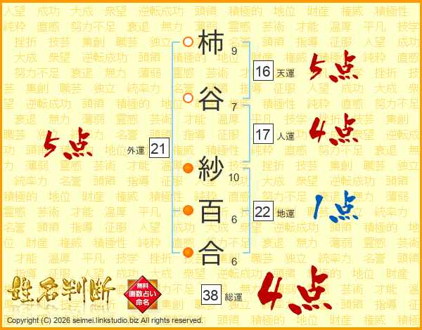 柿(9画)谷(7画) 紗(10画)百(6画)合(6画)