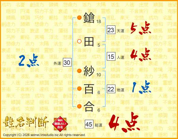 鎗田紗百合さんの総運は45画の4点!