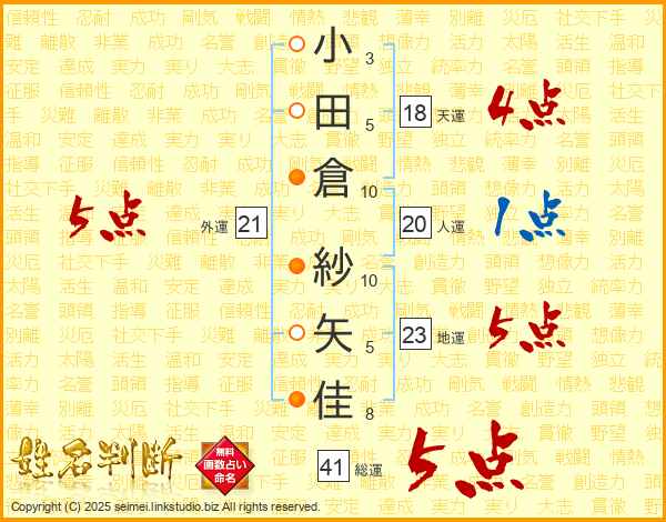 小田倉紗矢佳さんの外運は21画の5点!