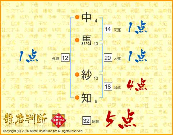 中馬紗知さんの総運は32画の5点!