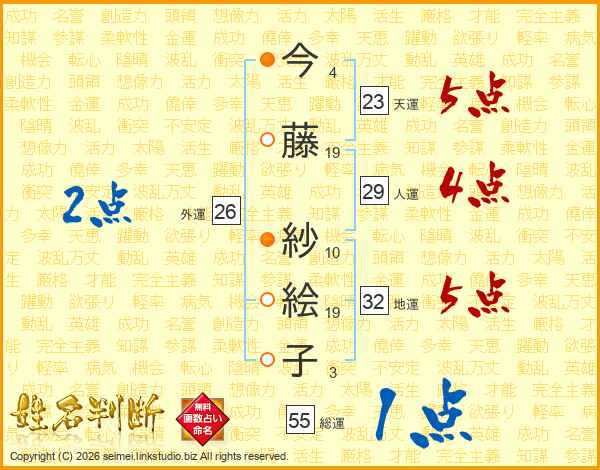 今藤紗絵子さんの地運は32画の5点!