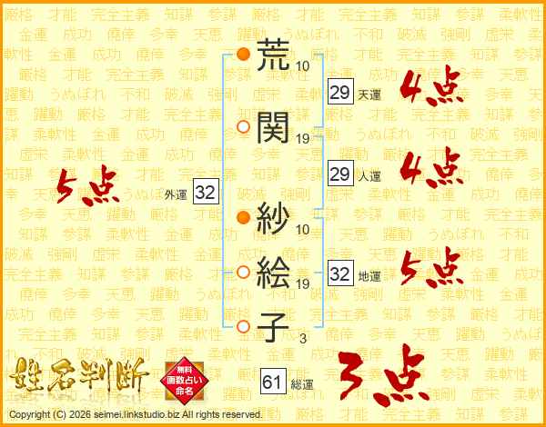 荒関紗絵子さんの天運は29画の4点!