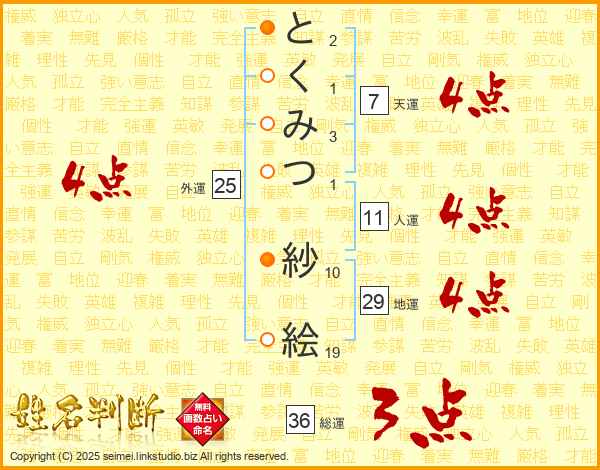 と(2画)く(1画)み(3画)つ(1画) 紗(10画)絵(19画)