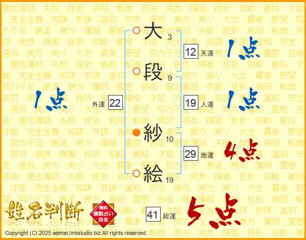 大段紗絵さんの総運は41画の5点!