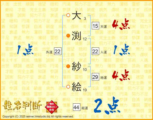 大(3画)渕(12画) 紗(10画)絵(19画)